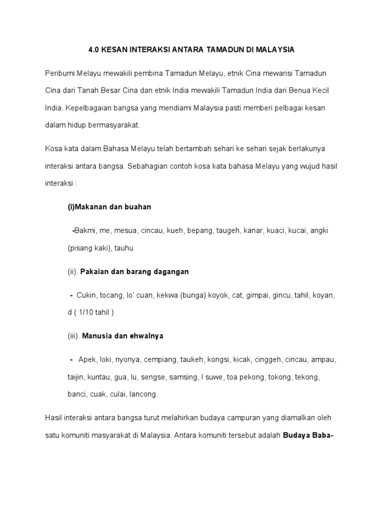Kesan Interaksi Antara Tamadun Di Malaysia