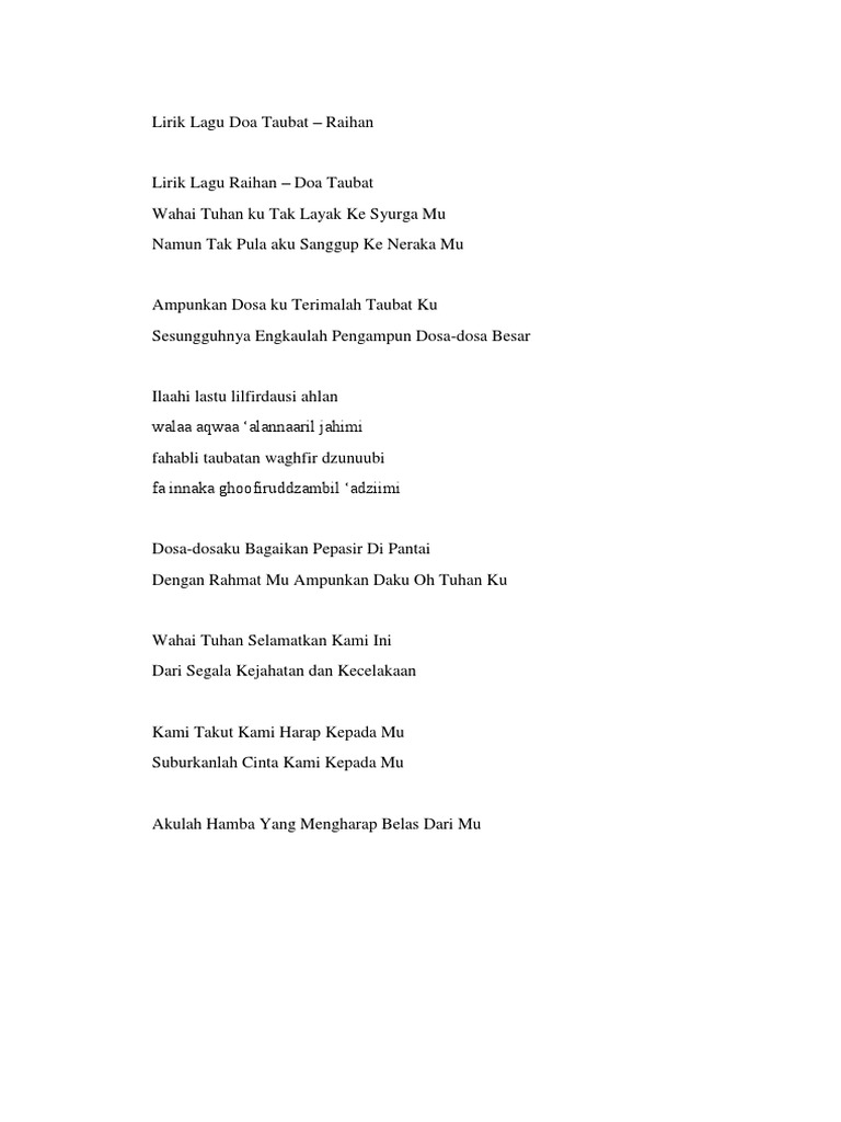 Lirik Lagu Doa Taubat