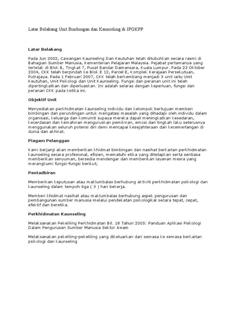 Contoh Karangan Bimbingan Dan Kaunseling