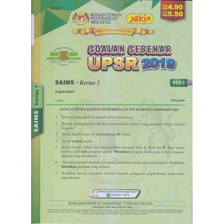 Soalan Sebenar Upsr Sekolah Kebangsaan Tahun 2016 2019 Sains 国小历年试卷 国小历年试卷soalan Sebenar Upsr Sekolah Kebangsaan Tahun 2016 2019 历年试卷kertas Soalan Peperiksaan Sebenar Upsr 2016 2019