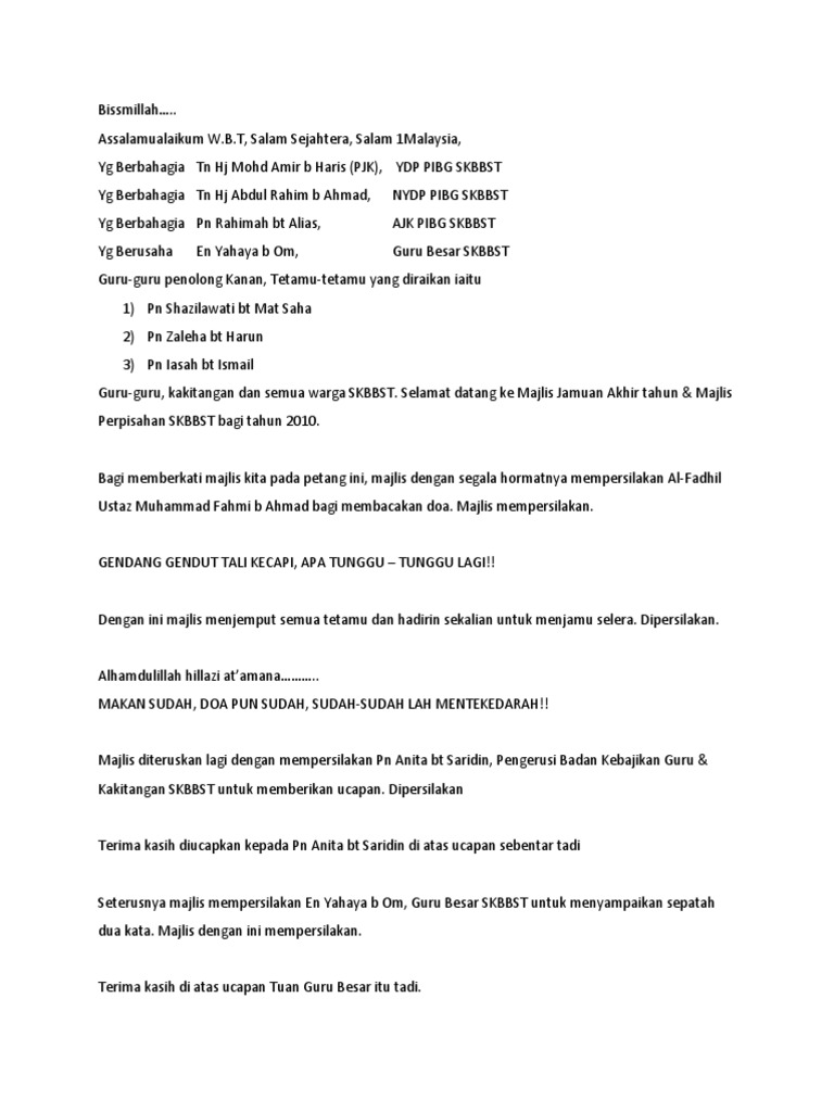 Doc Contoh Teks Pengerusi Majlis Jamuan Akhir Sk Tunku Abdul Malik Academia Edu